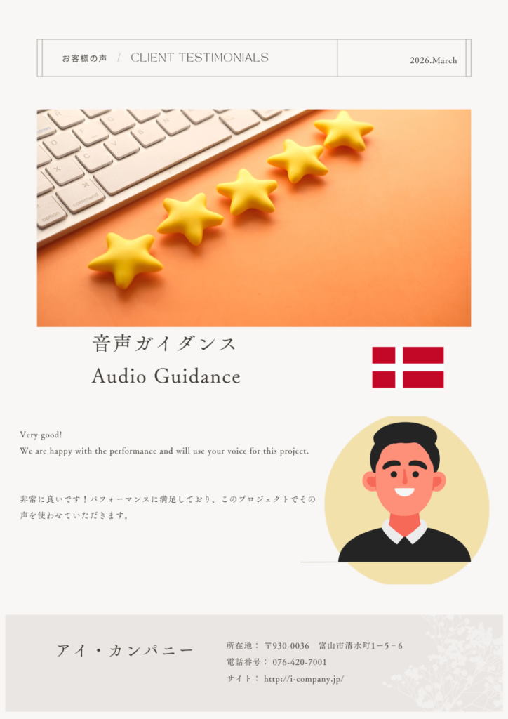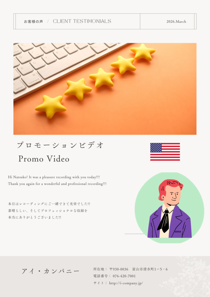 ワンポイントでの英語ナレーションも対応いたします。