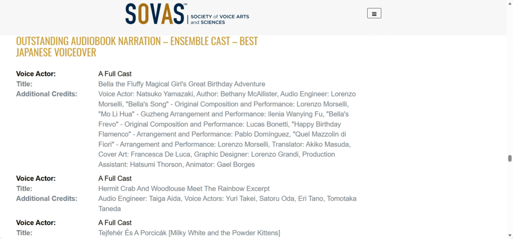 そして、今回はもう一つ、オーディオブック部門でもノミネートをいただきました。光栄なことに3年連続です。