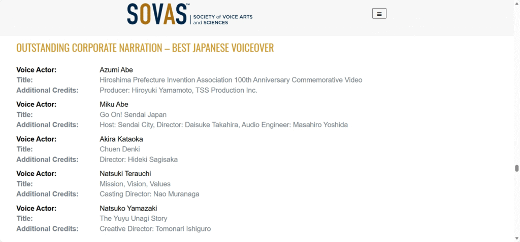 この度、弊社が制作した企業動画が、SOVAS VOICE ARTS AWARDSの企業動画部門(ナレーション)で、ノミネートをいただきました!